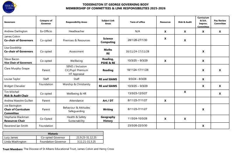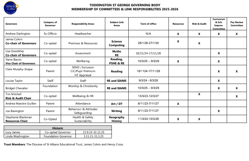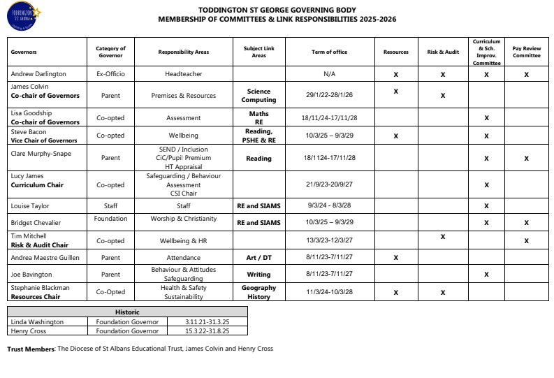 Information about the roles and responsibilities of the Governing Board can be found below and in the Scheme of Delegation.